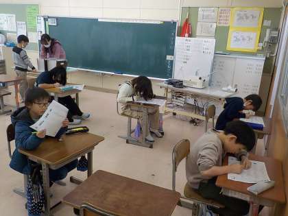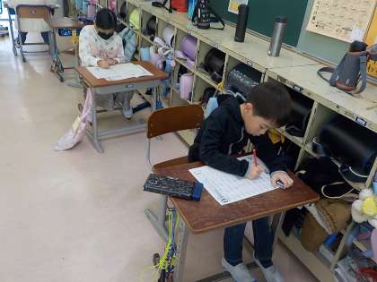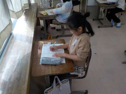 3年生は課題別の復習プリントに取り組みました。漢字や計算等、2学期の学習したことを思い出しながら静かに取り組みました。