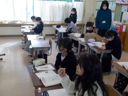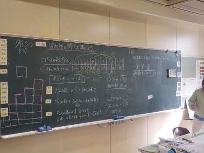 4年生は算数科で、2つの量の変わり方を考えました。子供たち、表を見て2つの量の規則性を見付けて発言していました。