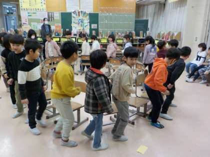 いす取りゲームやリレー大会など、これまでの集会で楽しかった企画をもう一度やりました。