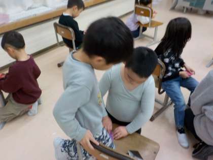 みんなで折り鶴をつくりました。自分の力で仕上げた鶴を見て、とてもうれしそうな子供たちでした。