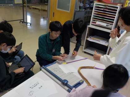 6年生の卒業文集作成委員の子供たちが、クラスの扉のページや特集ページの作成に取りかかっていました。