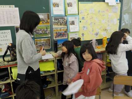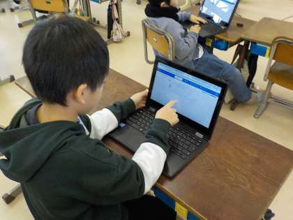 2年生は算数科で、昨日に引き続き九九の復習を行いました。端末のクラウドドリルを活用して練習する子供もいました。