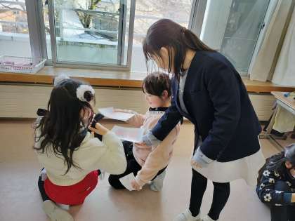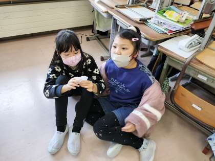 プレゼント渡しでは、休み時間やお家で一生懸命作ってくれたプレゼントを友達に渡していました。