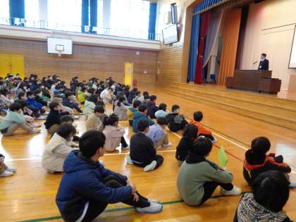 今日は、2学期終業式でした。校長先生の話をしっかり聞きながら、自分たちを振り返っていました。教室や下足ロッカーの掃除をして、2学期の思い出を動画で振り返りまいした。3学期もよろしくお願いします。