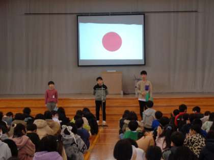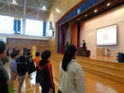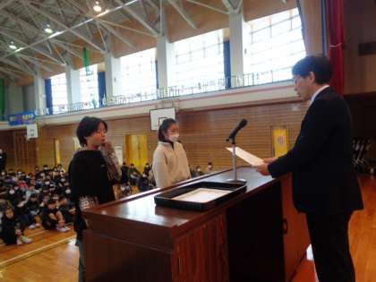 心配された大雪も大庄地区を避けてくれたのか、予定どおり第2学期終業式を無事に迎えることができました。校長先生の「賢い実」「笑顔の実」「元気の実」という収穫できた3つ実の話を拝聴し、2学期を振り返りました。また、頑張った友達の授賞伝達や、作文発表に拍手を送り讃えました。