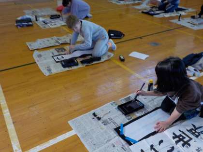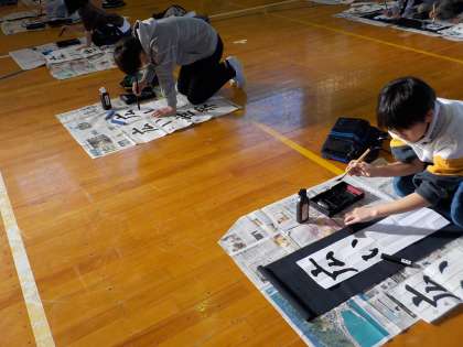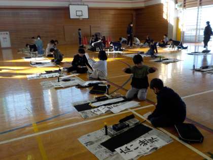 いよいよ3学期がスタートです。今日は、始業式のあと書初大会がありました。冬休みの練習の成果が発揮されていて、2学期の練習よりもレベルアップした「広い世界」がたくさん仕上がっていました。