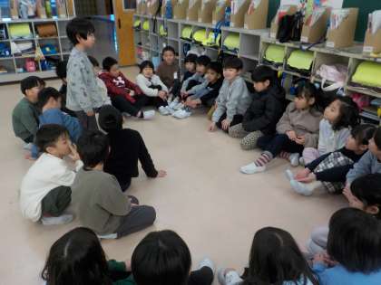 始業式のあと、地震が起こったときのことについて聞き合いをしました。