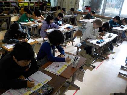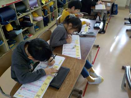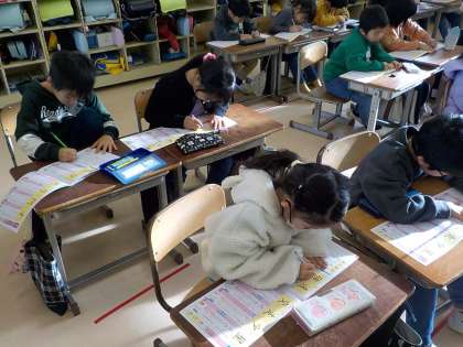 2年生は国語科で新出漢字の書き取りを行いました。筆順に気を付けて書いていました。