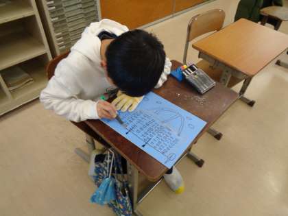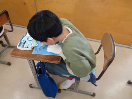 2学期の終わりがら取り組み始めた版画では、彫刻刀を使って線を彫る活動に入りました。安全に気を付けて、自分が思い描いた作品になるように細かいところまでていねいに彫り進めています。集中して取り組む姿がたくさんみられました。