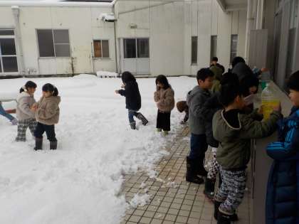 「カップに水を入れて、さらに雪も入れるといいんじゃない」
