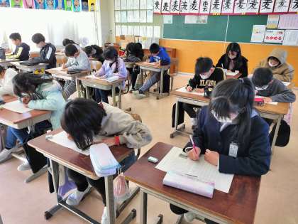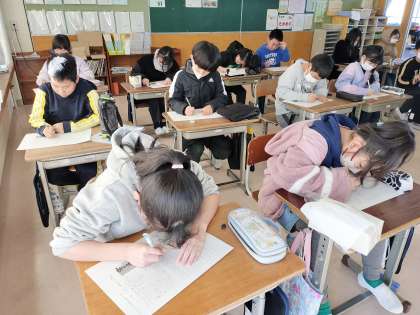 書写の時間に、作文用紙の使い方を確認し、丁寧に字を書きました。