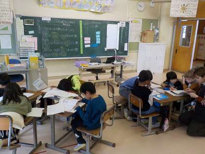 2年生は算数科で、10000までの数のしくみを学習しました。子供たちは今日の課題を自分なりのペースで進めていました。問題が分からないときは、グループの友達や先生に聞いて解決していました。