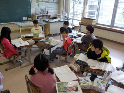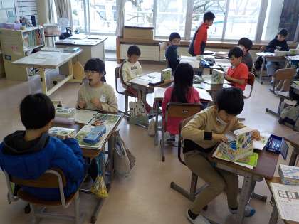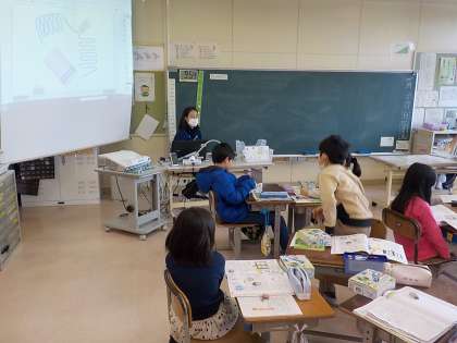 3年生は理科で、豆電球に明かりがつくときの条件を考えました。電池と豆電球をひとつの輪のようにしてつなぐと明かりがつくことがわかりました。