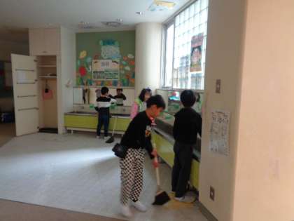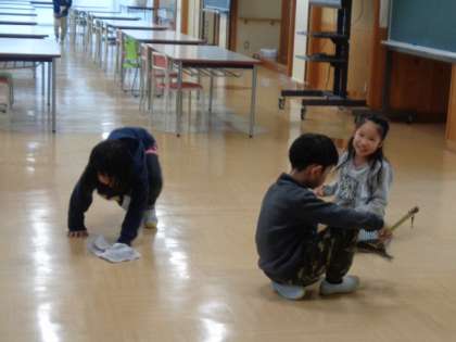 23日(火)は、4年生から6年生がスキー学習で不在のため、1年生から3年生は各学級に割り当てられている場所を清掃しました。