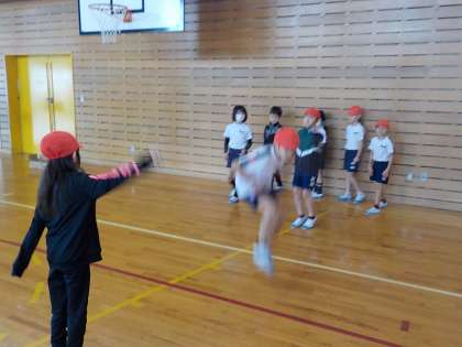 3年生は体育科で、8の字ジャンプの練習に取り組みました。色団ごとに跳んだ回数を記録して、チームの記録が少しずつよくなっていることを励みにがんばりました。