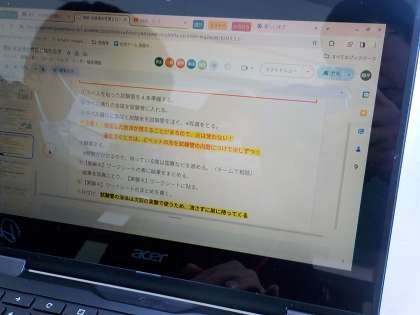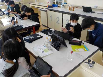 6年生は理科で、さまざまな水溶液の性質について実験をして学びました。実験の結果をもとに、金属を溶かすもの、においがあるもの等、仲間分けをして考えを整理していました。