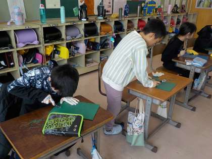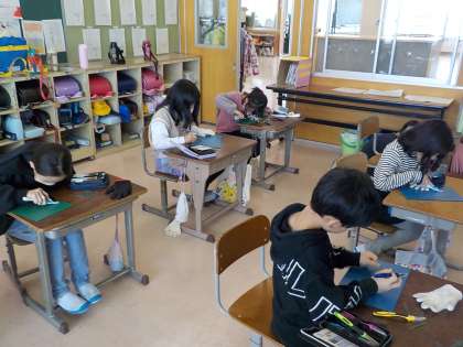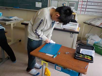3年生は図工科で、版画制作に取り組んでいます。今日は、下絵で描いた線を彫刻刀で彫りました。