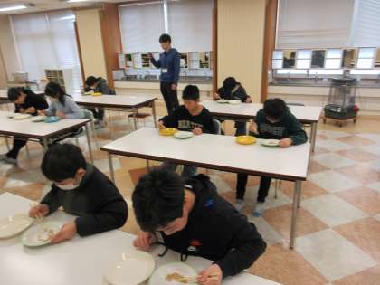 給食週間のイベントとして、豆つまみ大会が行われました。