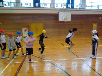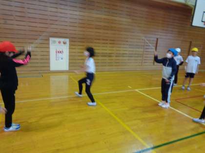 最近の体育では、縄跳び大会に向けてみんなで大縄の8の字の練習に取り組んでいます。今までは団ごとに練習していましたが、今日は初めてクラスごとに練習しました。みんなで声を掛け合っていました。