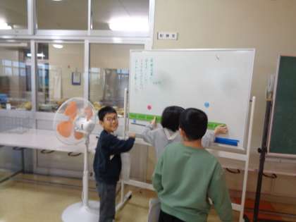 今日の算数では、1mのものを探して実際にものさしで測る活動をしました。予想を立てながら測り、なかなか見つからない様子でしたが、「1mぴったりの物あったよ」と教えてくれる子供もいました。