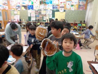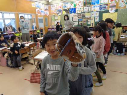 今日、子供たちに大谷選手からグローブが届きました。みんなは実際にグローブをはめ、いつ使えるのかとわくわくしていました。野球に興味をもってくれると嬉しいですね。