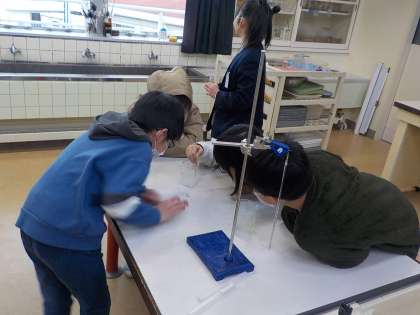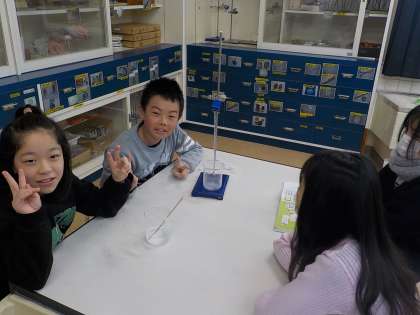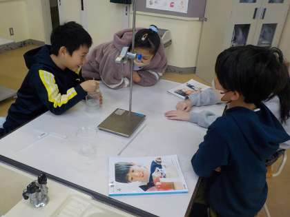 4年生は理科で、「水のすがたと温度」の学習をしています。水の温度を下げていくと氷に変わっていく様子を観察しました。