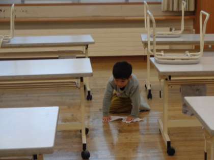 最後まで丁寧にそうじをしてくれてありがとう。ファミリー班での振り返りは大事ですね。