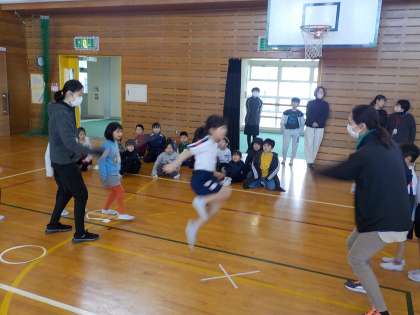 8の字ジャンプの練習を始めた頃には、なわに入るのを怖がっていた子もいましたが、タイミングよくなわに入ってジャンプする子が増えました。