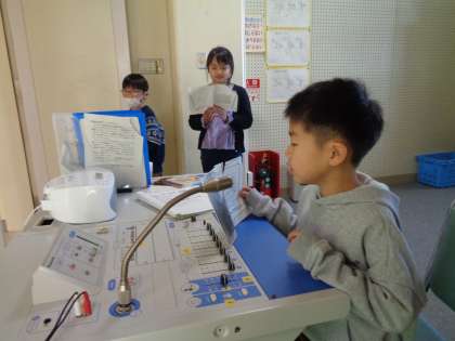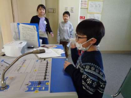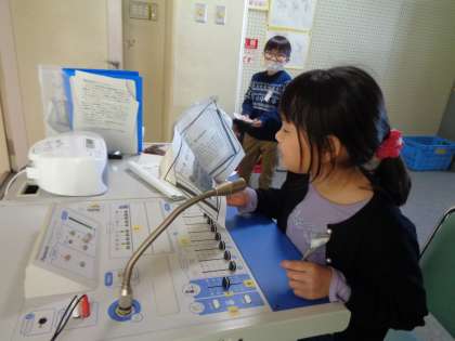 今日の給食の時間に、3名の子供がお気に入りの本を放送で紹介しました。初めての放送室にドキドキしながら、上手に放送することができました。