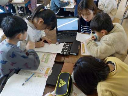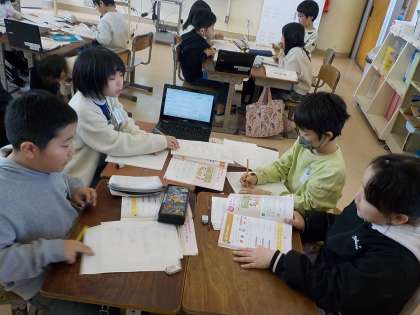 2年生は算数科で、線分図を利用して考える問題に取り組みました。ワークシートには学習の目当てや振り返りを記入して進めています。