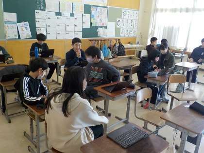 6年生は理科で、人のくらしは環境にどのような影響を及ぼしているのかを調べたり考えたりしています。今日は調べて考えたことを友達と聴きあって視点を広めたり深めたりしていました。