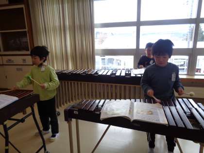 今日は、こぐまの2月という曲を鍵盤ハーモニカと木琴で演奏しました。初めて木琴で演奏したので、マレットの持ち方やたたく場所を意識して演奏しました。