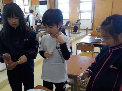 1年生は星が輝く夜空を思い浮かべて、音楽づくりに取り組みました。