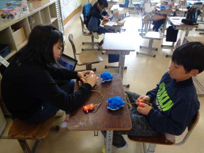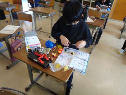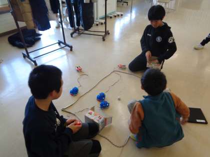 理科では、電流が生み出す力について学習してきました。今日は、電磁石の性質を生かしたおもちゃづくりに取り組みました。友達と場づくりを工夫したり、教え合ったりして楽しく活動することができました。