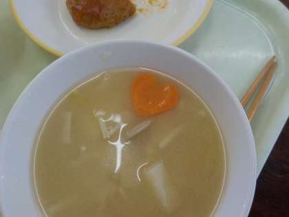 バレンタインデーなので、今日の給食の味噌汁の具にハートのにんじんがいくつか入っていました。入っていることに1人の子どもが気づくと、自分のにも入っていないかみんな探していました。おいしい給食だけでもとても幸せですが、ハートがあるとさらに嬉しい給食でした。おかわりでハートがほしいとリクエストが殺到していましたが、残念ながら残おかわりの中にはハートが残っていませんでした、、、。またのチャンスに期待です。