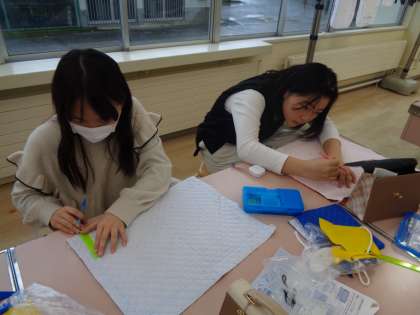家庭科ではミシンに挑戦しています。先週まで、練習布で縫う練習をしていましたが、今日からウォールポケットづくりに入りました。きれいな仕上がりになるように長さを丁寧に測ったり、まっすぐ縫えるように様子を見ながらミシンで縫ったりしました。満足のいく作品に仕上がるといいですね。