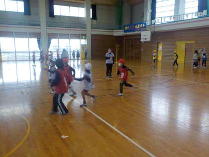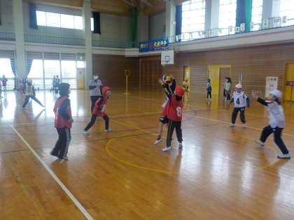 3年生は体育科で、セストボールを行いました。バスケットボールとよく似ていますがリングが低くなっていてシュートしやすくなっています。