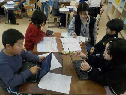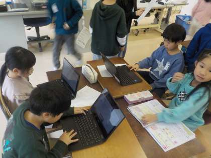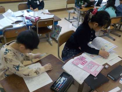 2年生は算数科で、自分の進度に合わせた課題に取り組みました。早く進んでいる子はクラウド教材やドリルに取り組んでいました。