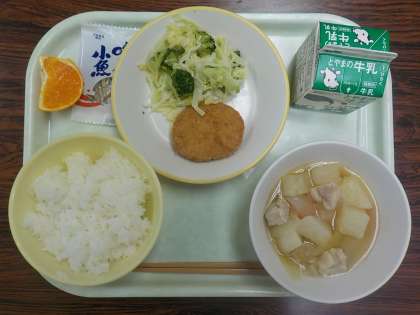 今日の給食メニュー:2月22日(木) 公開日 2024/02/22 更新日 2024/02/22 全校 今日の給食メニューは ごはん コロッケ グリーンサラダ ポトフ 煮付け小魚 甘平(みかん) です。