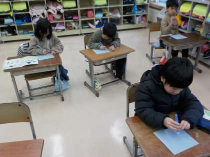 筆で書くときは、鉛筆よりもしっかりと書かなければならず、難しさを感じましたが、筆の書き心地も楽しんでいた子供たちでした。