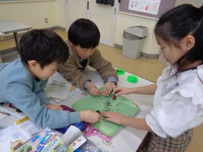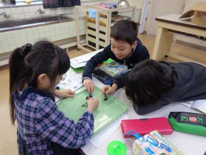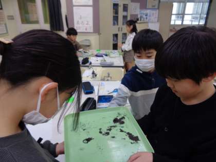 今日は砂鉄を使って実験をしました。砂鉄がじしゃくに引きつけられる様子がおもしろく、とても楽しそうに実験していました。