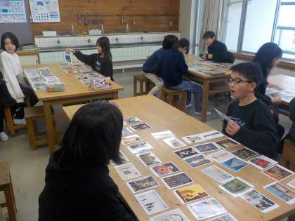 4年生は図工科で、カードを使いながら鑑賞の学習をしました。どのカードを選び、どこを気に入ったかを紹介し合う活動に取り組みました。