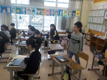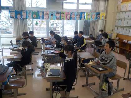 4年生は国語科で、くらしの中で調べたいテーマを考えて、アンケートを作り、調べ活動をします。
