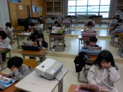 鍵盤ハーモニカの演奏は、これまでの曲よりも少し難しく、懸命に指を動かす姿が見られます。