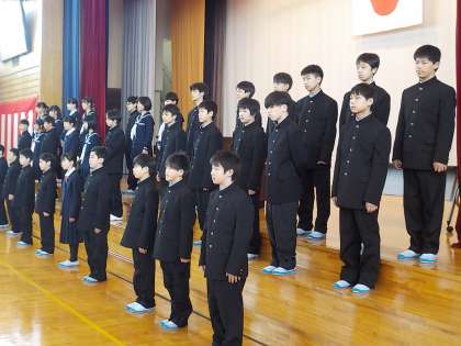卒業式の予行練習を行いました。卒業証書授与に始まり、巣立ちの言葉まで、本番を想定して行いました。