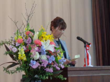 学校長式辞に続き、田中育成会会長と麻畠大庄地区自治振興会会長から祝辞をいただきました。