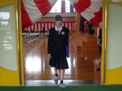 最後に校歌を歌い、卒業生は式場をあとにしました。