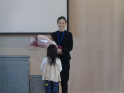 修了式後、9年間お世話になった柳原先生、3年間お世話になった学校司書の中谷先生とのお別れの式を行いました。本当にありがとうございました。またどこかでお会いできますように…。