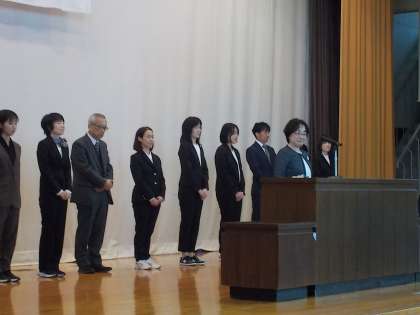 退職・転出教職員との別れは大変名残惜しいのですが、今後も健康で活躍されることを祈っています。また、残された教職員は、新たに加わる教職員とともに力を合わせ、よりよい教育活動を進めていくよう努めます。