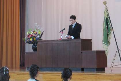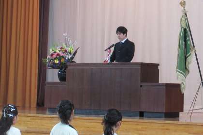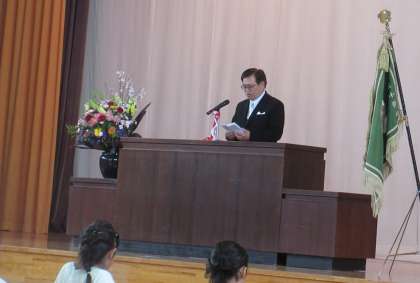 式が始まり、校長式辞、育成会代表者と自治振興会長の祝辞と続きました。